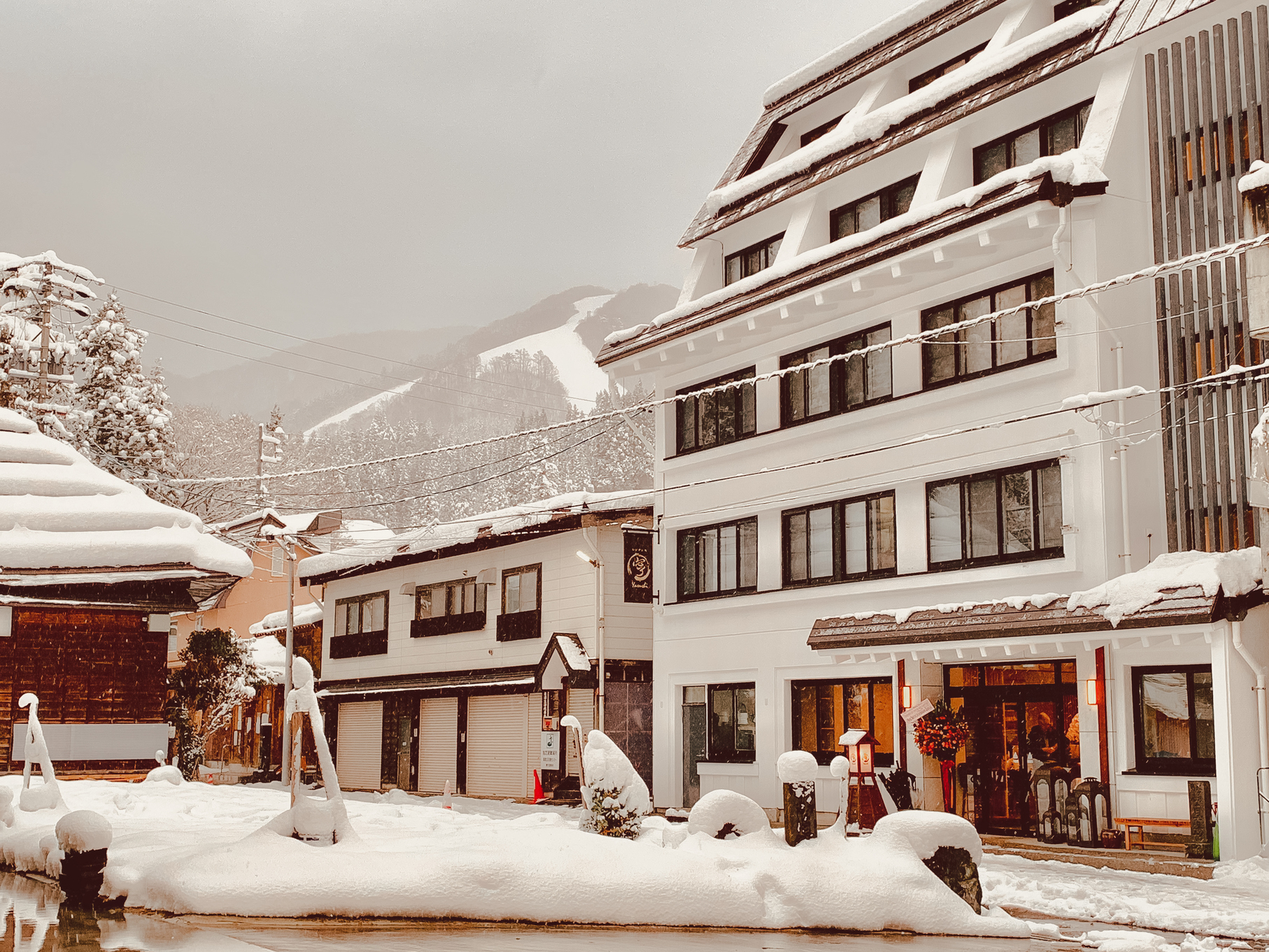 野澤溫泉是一個小山村,從 Address Nozawa 飯店步行即可到達。特別是附近的地標性溫泉 O-yu,步行不到一分鐘就可到達。步行 3 分鐘即可抵達通往 Hikage home 斜坡的「yu-road」旅行電車。